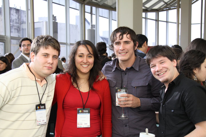 V. Bossio (UBP), Gerardo Berriel (Uruguay), F. Miscevich (UBP), A. Blanco (UBP), Tomas C. Morell (Puerto Rico), Hugo Nisembaum (Brasil-Argentina), Adriana Marcovich (Argentina), Gregorio Pérez Arrau (Chile), Sonia Boiarov (Argentina), René Castro Berardi (Brasil) y M. Lorenzatti (UBP) en el el cierre del congreso. |